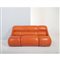 Divano a due posti modello “Ciuingam”, struttura con imbottitura in gommapiuma schiumata, rivestimento in pelle cognac. Usura alla pelle.