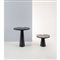 Due tavoli bassi modello “Eros” in marmo nero Marquina con piano ad incastro a secco su un elemento troncoconico. Altezze differenti.