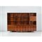 Importante e rara grande libreria realizzata per Luigi Fontana e le sedi di Fontana Arte, struttura in legno esotico, nella parte superiore un vano chiuso con vetri scorrevoli diviso in tre parti con due ripiani, lateralmente due vani a giorno con cassettiera centrale a tre cassetti; nella parte sottostante tre cassetti e due vani chiusi con ante battenti. Tre piedi a “V” in ottone sul fronte.