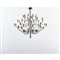 Lampada a sospensione a cinquanta luci modello “2097/ 50” disegno del 1958, struttura centrale in ferro cromato e bracci in ottone cromato nero. Attacco a soffitto e rosone di acciaio.