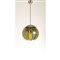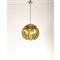 Lampada a sospensione a dieci luci modello “1280”, struttura metallo cromato, diffusore sferico composto da spicchi in cristallo curvato e colorato. Marchio di produzione.