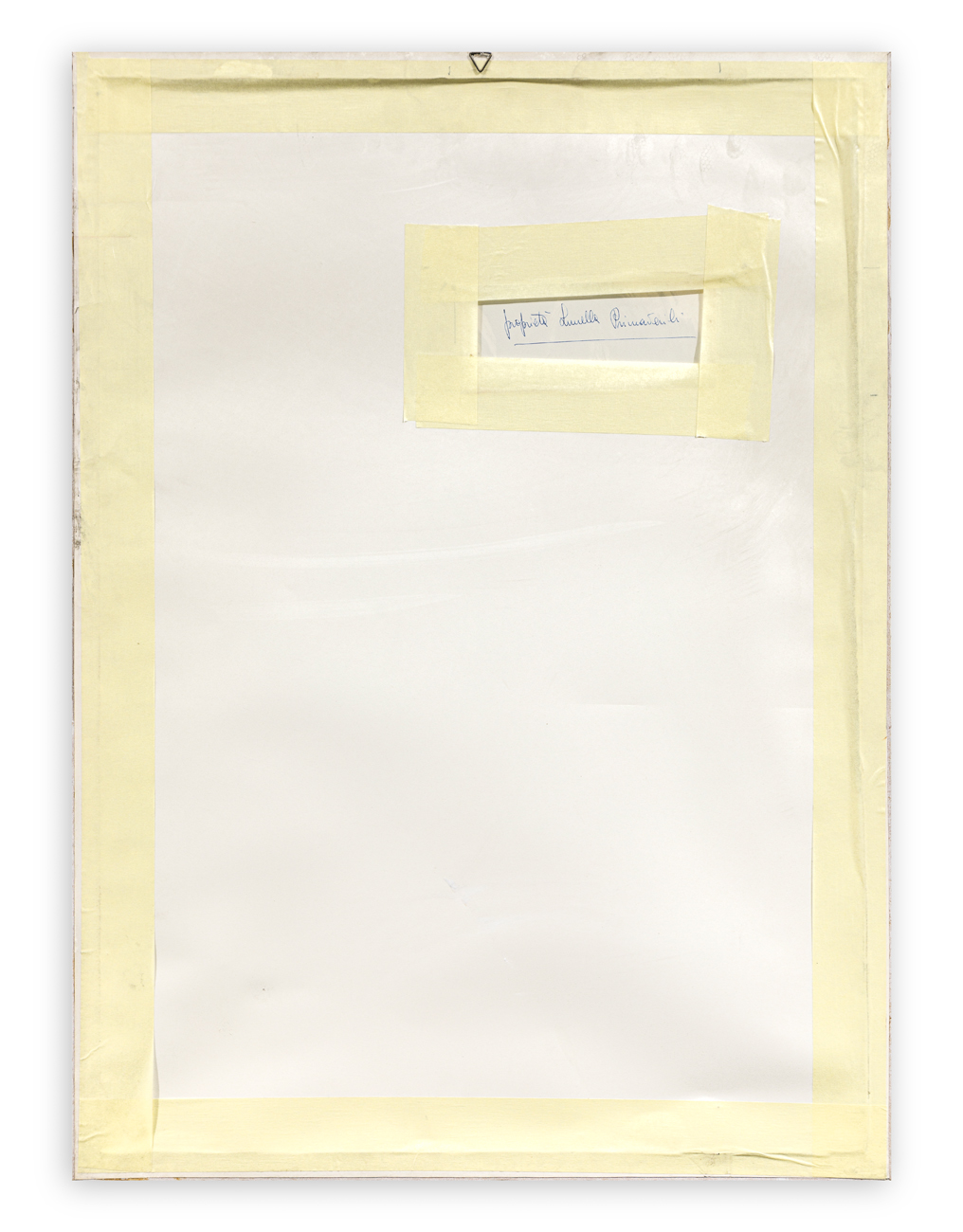 Iscrizione 'Proprietà Lunella Primaverili' al retro