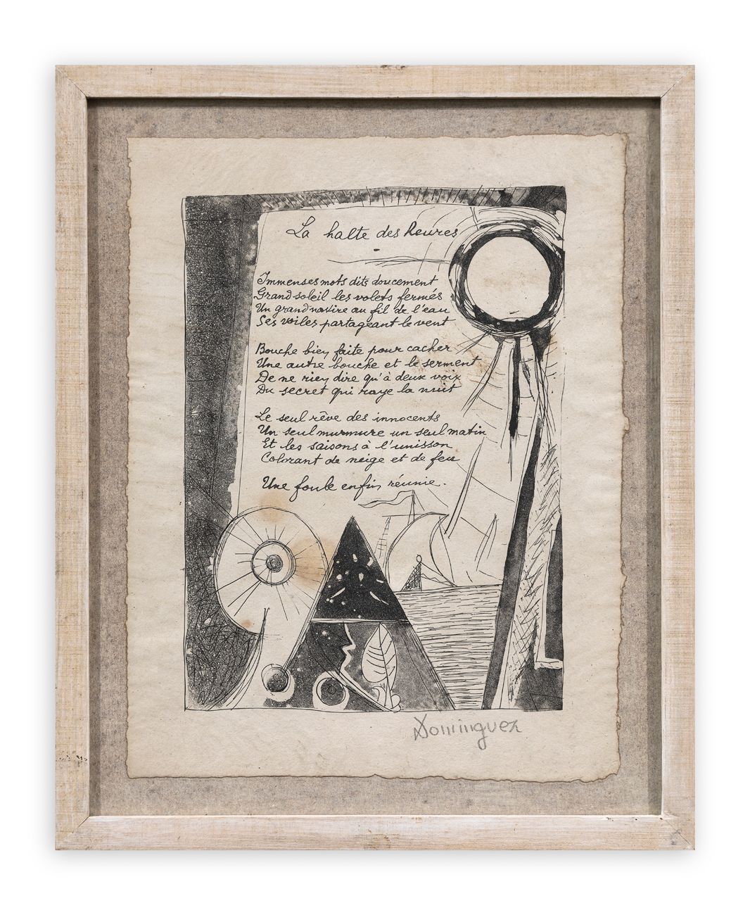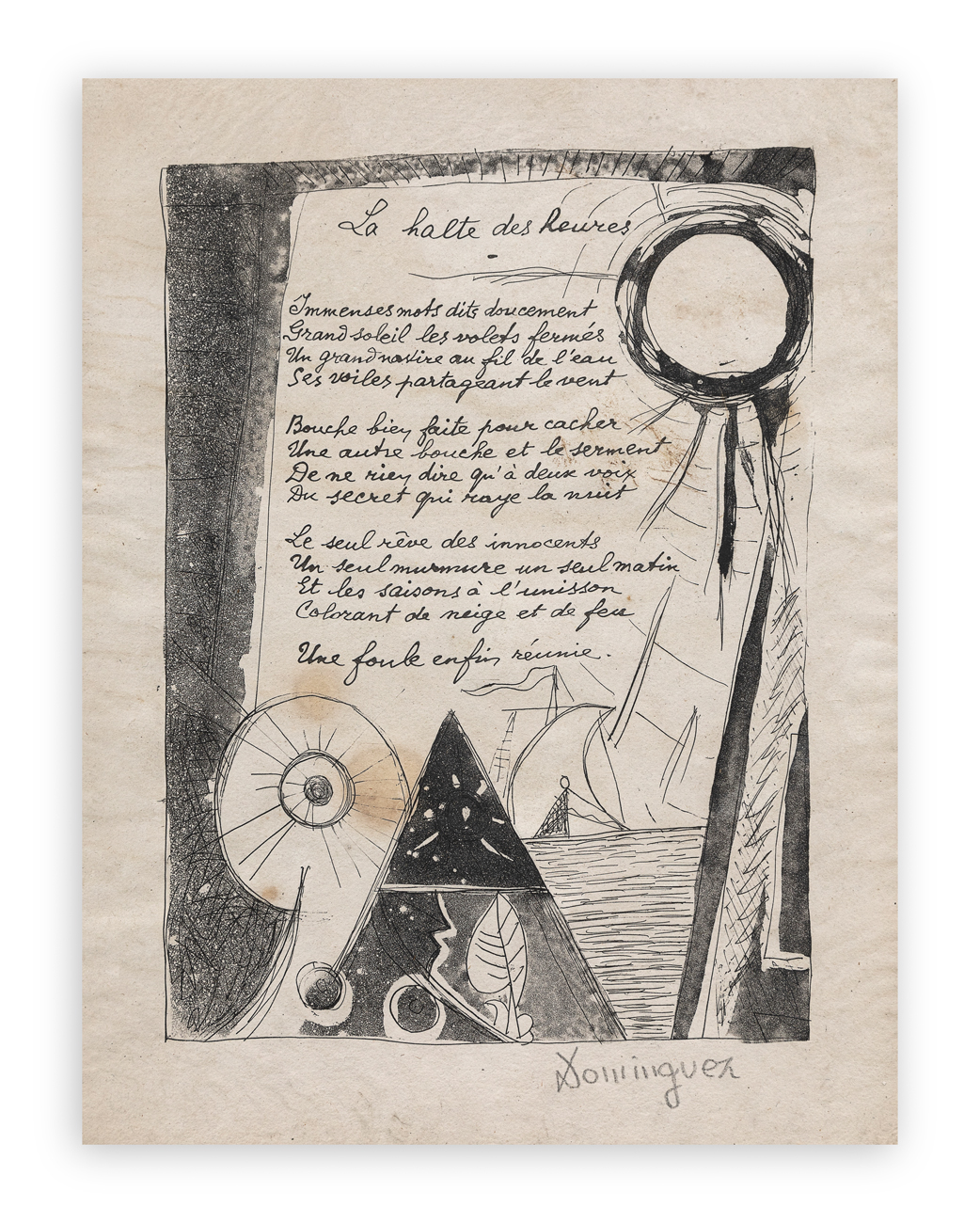 Opera originariamente facente parte del volume 'Poésie et Verité' con testi di Paul Eluard illustrati da 31 acqueforti originali e una litografia a colori di Oscar Dominguez
