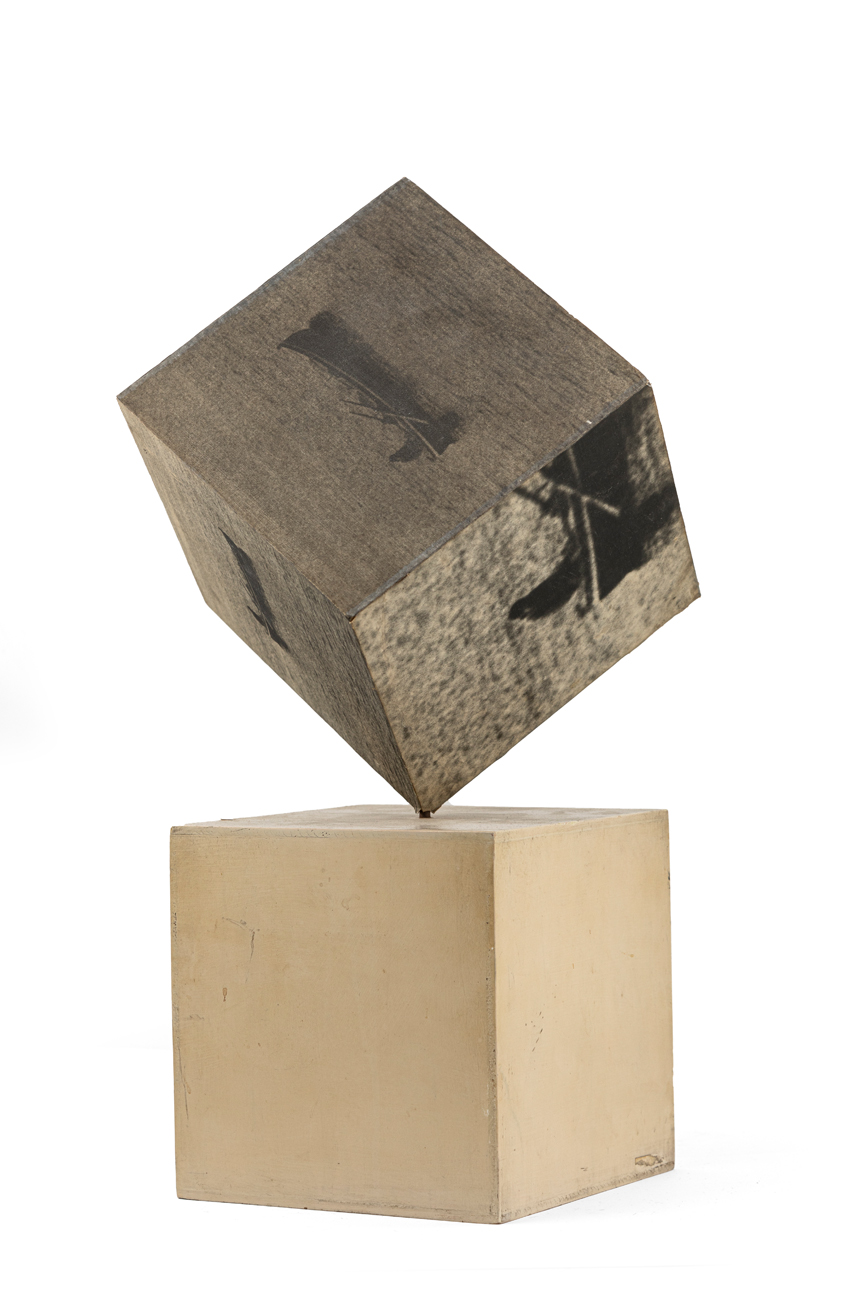 Riporto fotografico su tela applicata su tavola sagomata, corpo in ferro e base in legno