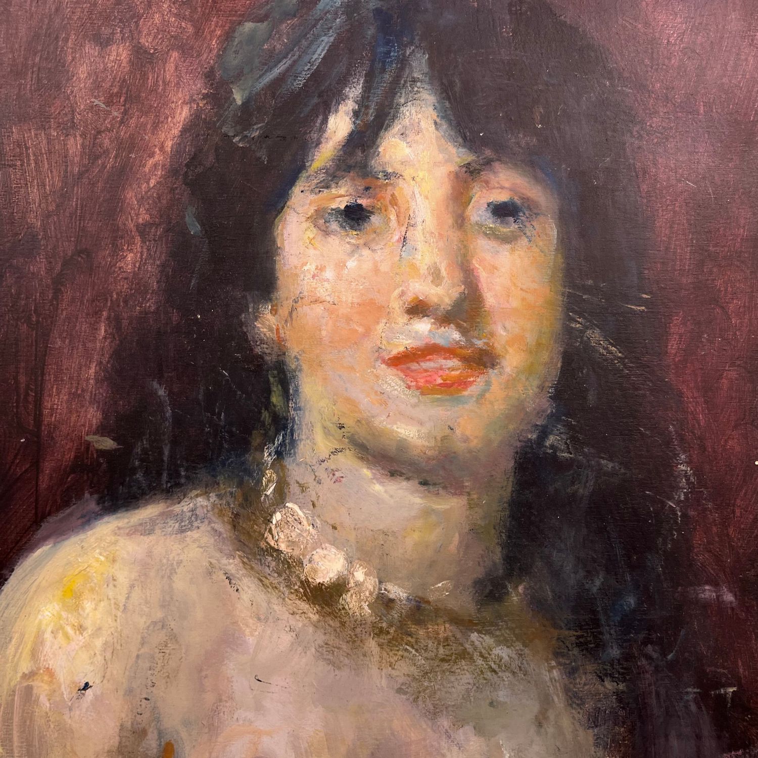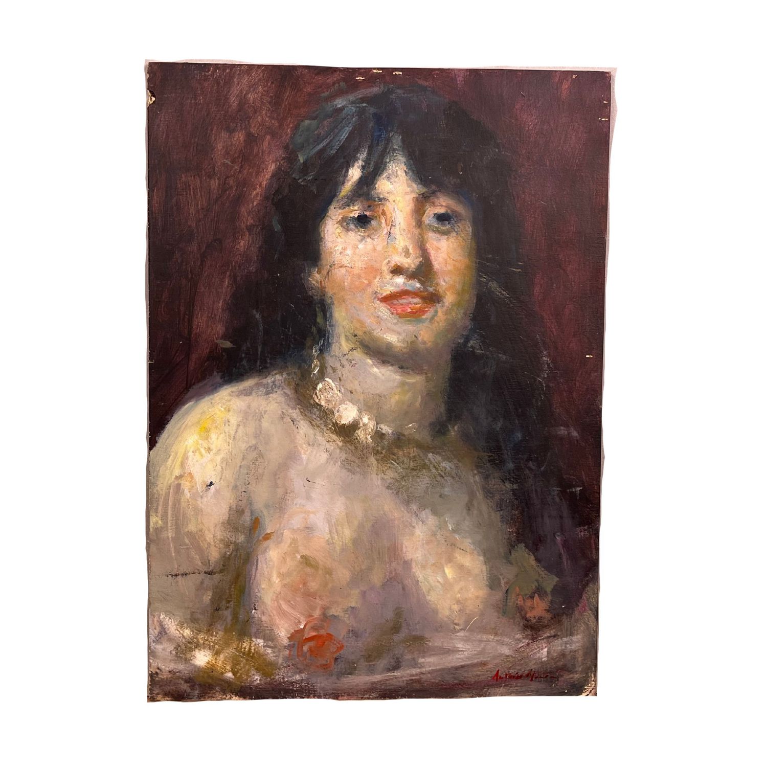 Dipinto olio su tavola periodo XX secolo scuola Italiana raffigurante Ritratto di donna, artista impressionista.
