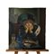 Dipinto olio su tela, scuola Francese raffigurante Ragazza al bistrot.