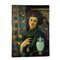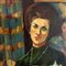 Dipinto olio su tela attaccato su pannelo, periodo 1962 raffigurante Ritratto di donna con abito verde.