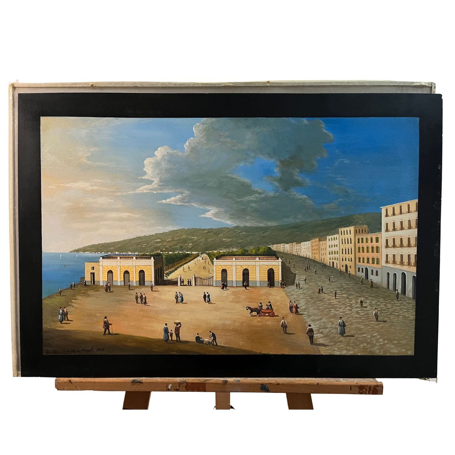 Dipinto Guaches (tempera su carta), raffigurante La Villa Reale a Napoli. XX secolo.