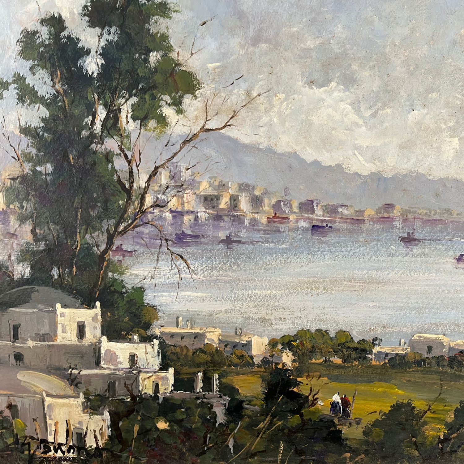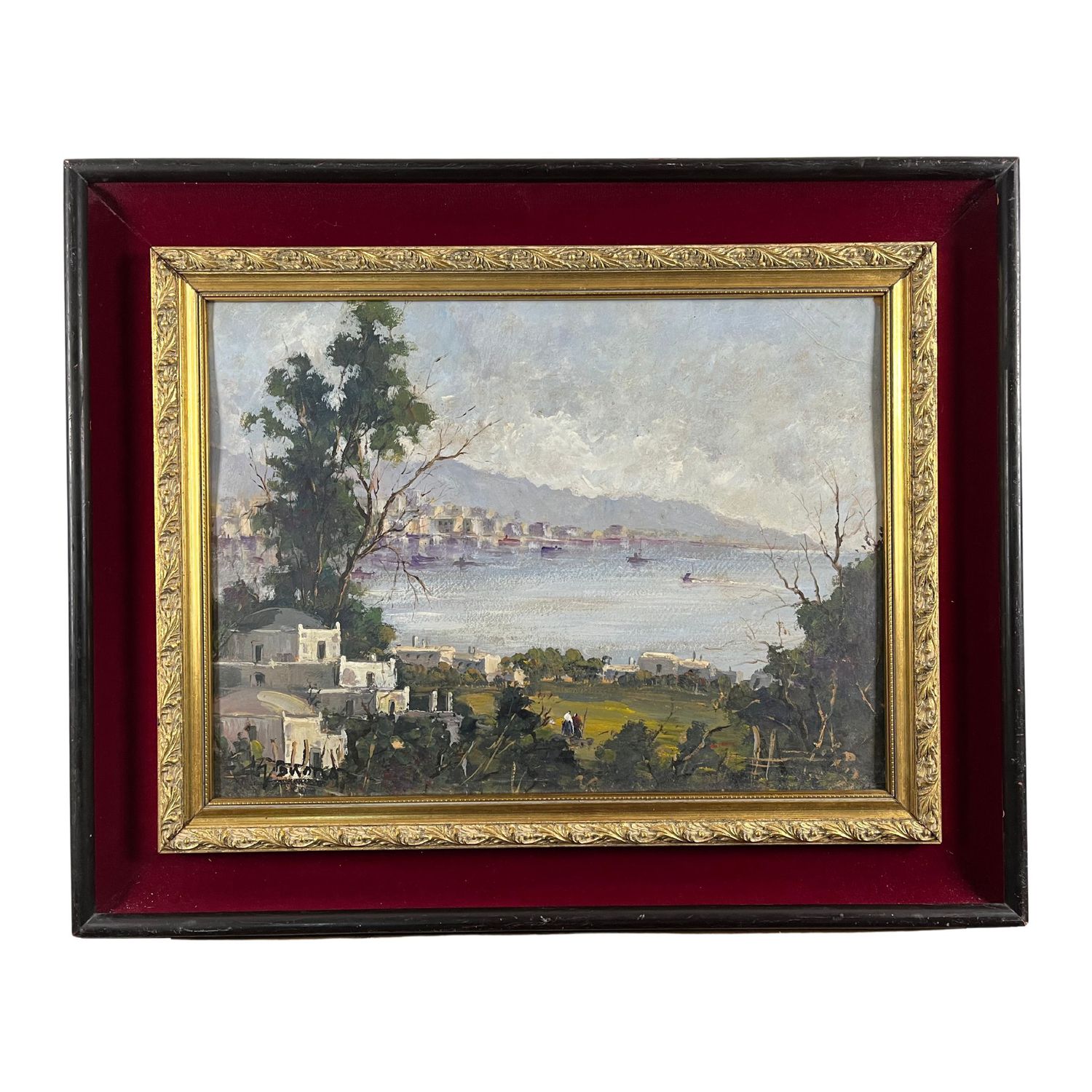 Dipinto olio su cartoncino, periodo XX secolo raffigurante Scorcio di marina Partenopea.