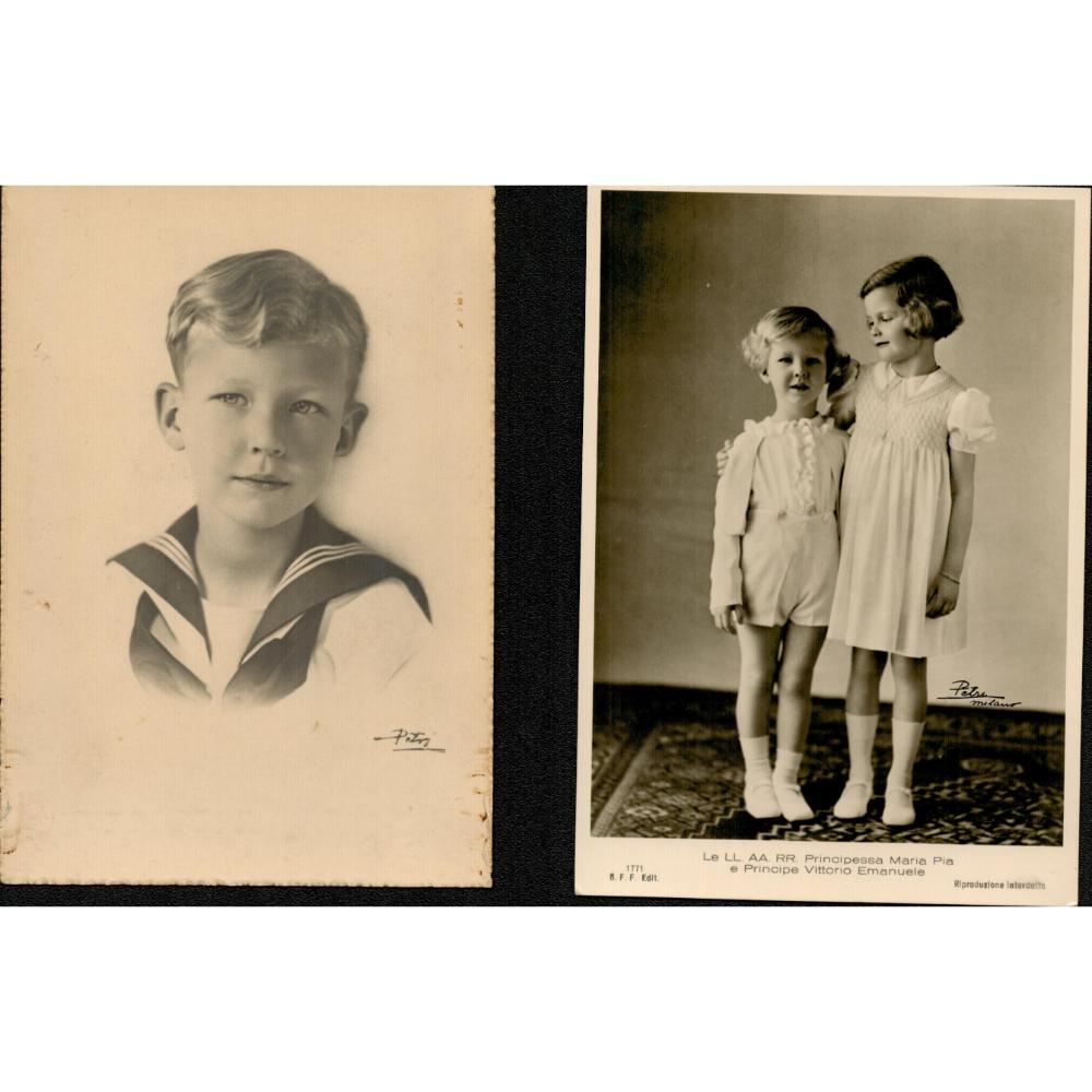 Lotto di 4 foto e 2 cartoline con ritratti dei membri di famiglia Savoia, alcun Casa Savoia e corti europee...