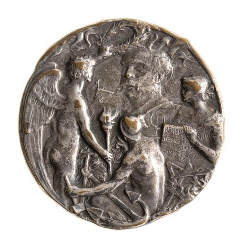 BRONZO ARGENTATO, 40,5 MM MEDAGLIA NON PORTATIVA CONIATA IN OCCASIONE DEL VARO DELLA REGIA NAVE BENEDETTO BRIN