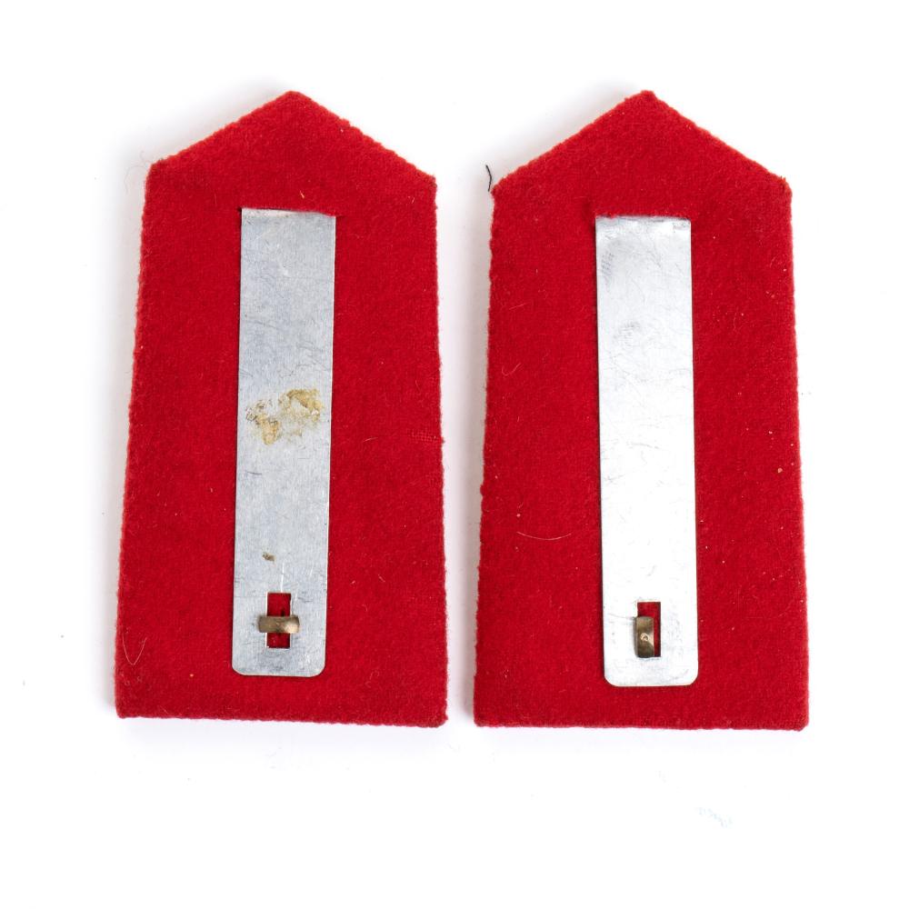 Bella coppia di controspalline in panno rosso con bordi e fregio in metallo dorato, ottimo stato