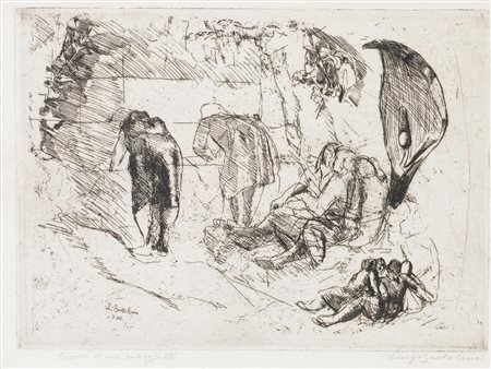 Acquaforte su carta, firmata in basso a destra, presenta titolo in basso a sinistra, reca sulla lastra firma e data, Lastra H cm 25x35