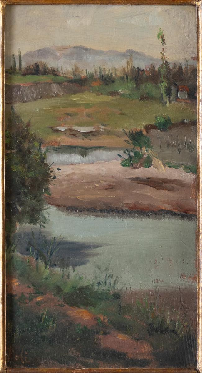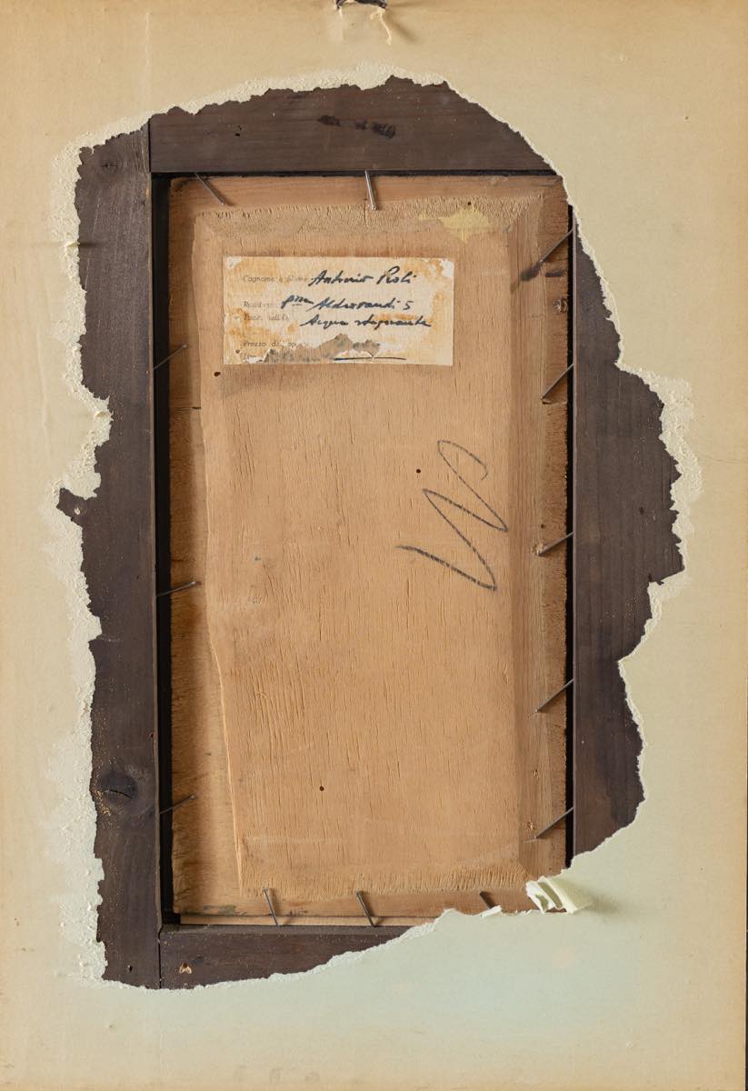 Olio su tavoletta, firmato in basso a sinistra “Roli”, reca al retro etichetta con autore, H cm 30x15