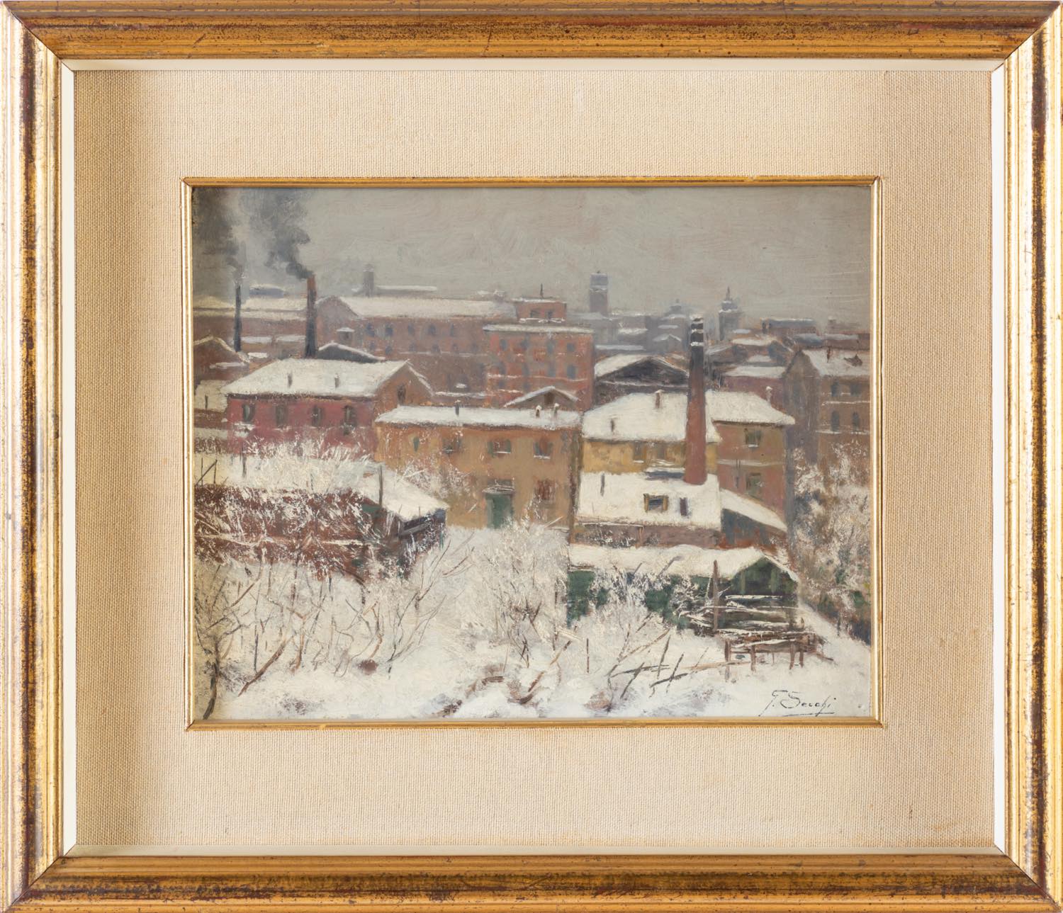 Lot 154 | Giovanni Secchi (Bologna 1876 - Darfo 1950), “Inverno dal mio studio”.