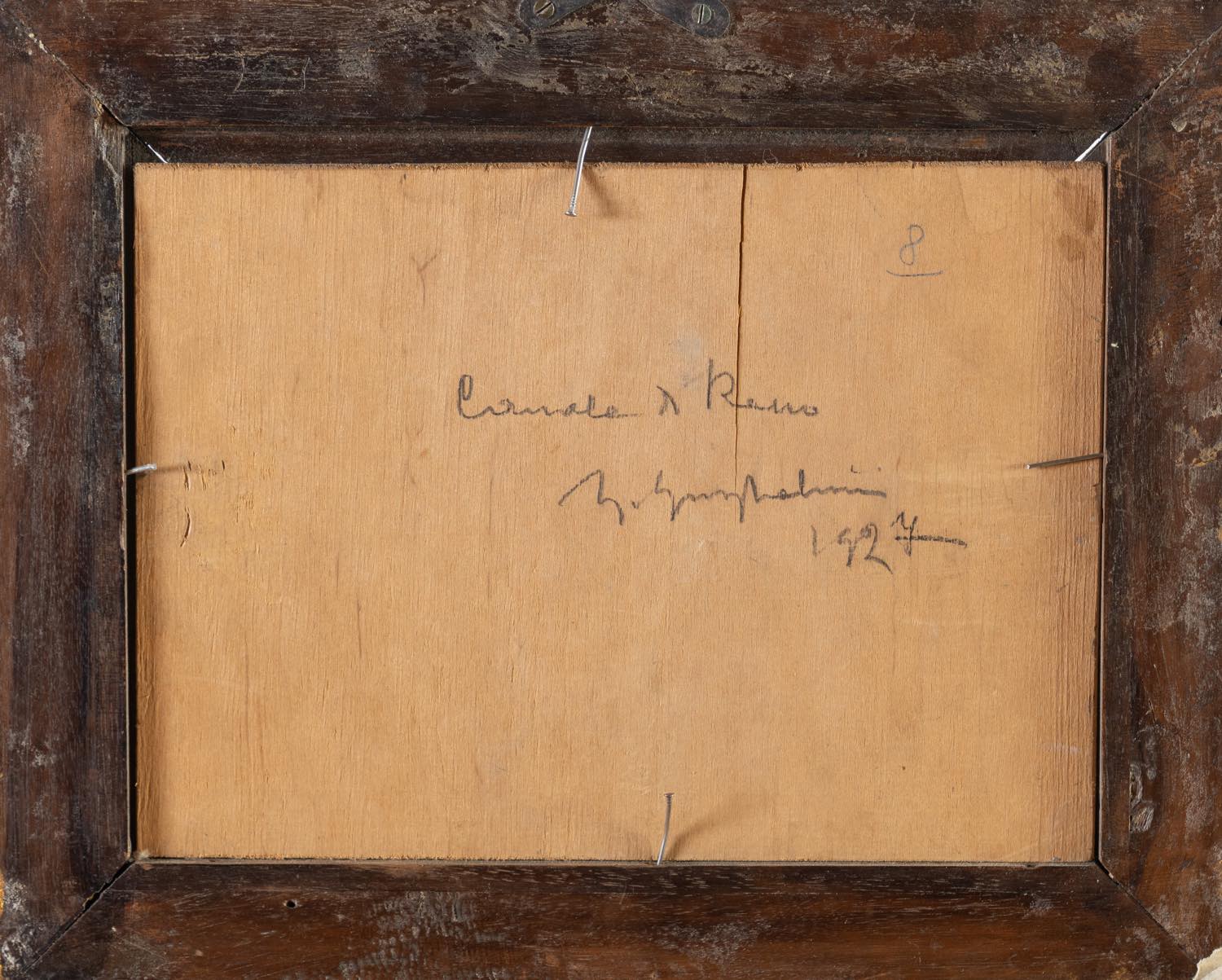 Olio su tavoletta, firmato in basso a destra, reca al retro titolo, firma e data, H cm 17x23