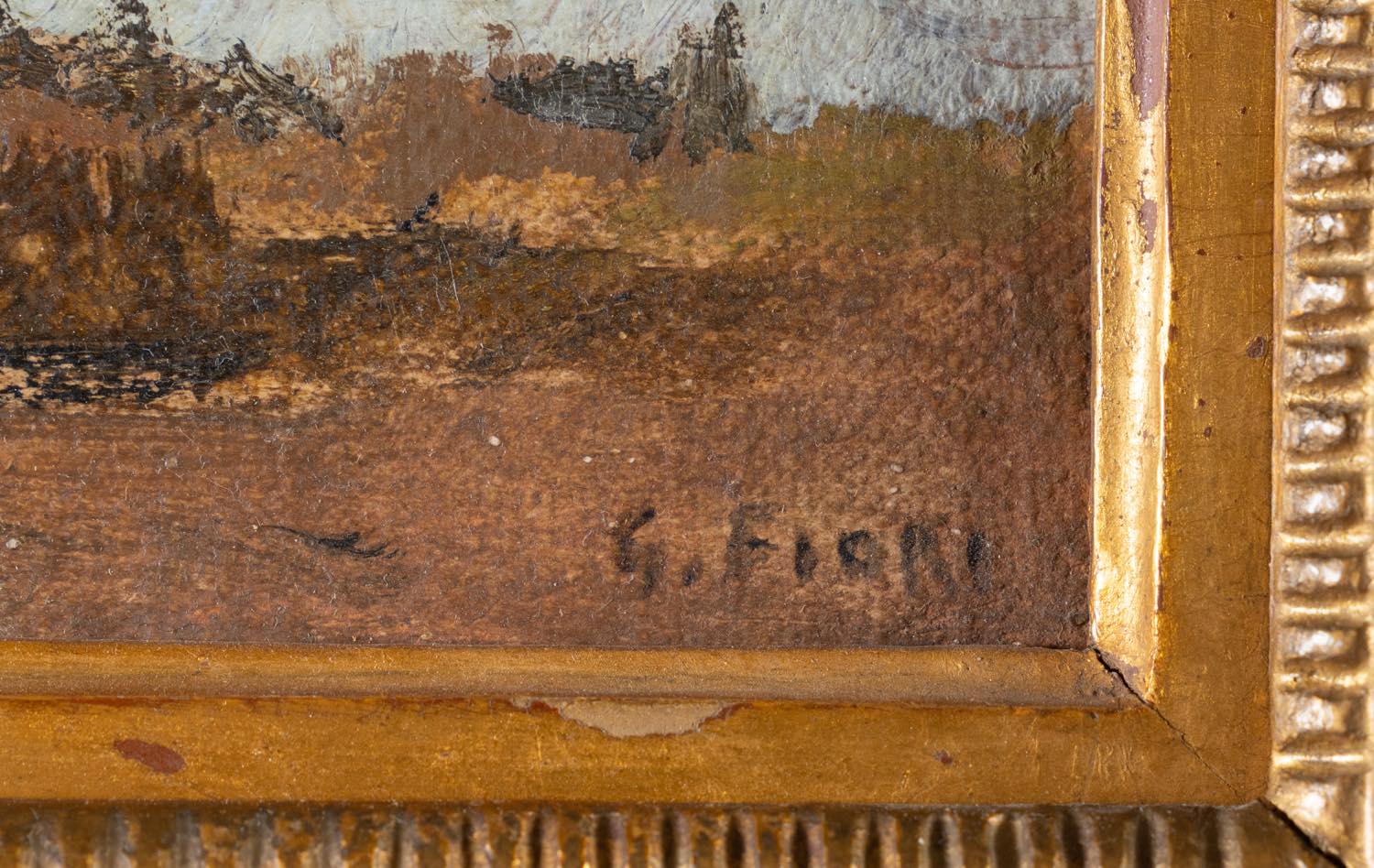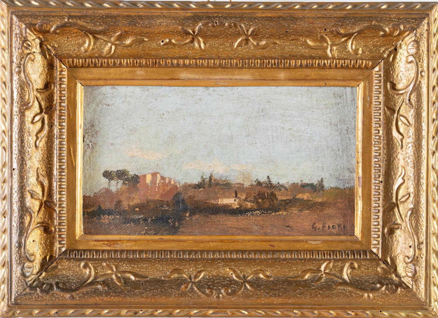Olio su tela applicata a cartone, firmato in basso a destra, H cm 10x19
