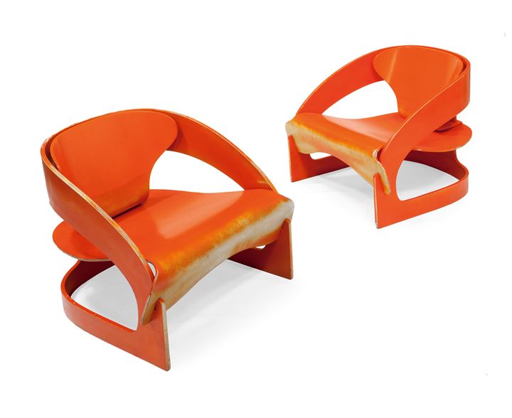 COLOMBO JOE 4801 Coppia di poltrone in compensato curvato e laccato. Prod....