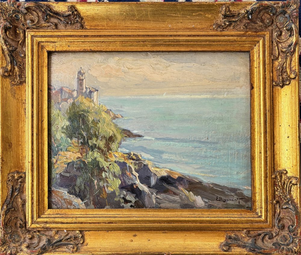 Ernesto Rigamonti Milano 1864 - 1942 Veduta di Sori Olio su cartone applicato su tavoletta cm 20x26 firmato in basso a dx