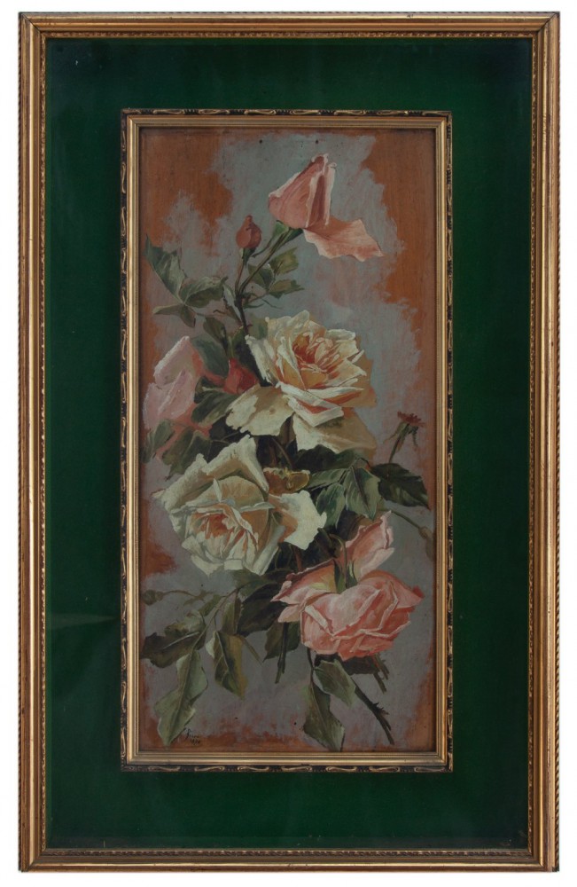Bini XIX secolo Rose Olio su compensato cm 50x25 firmato in basso a sx datato 1870