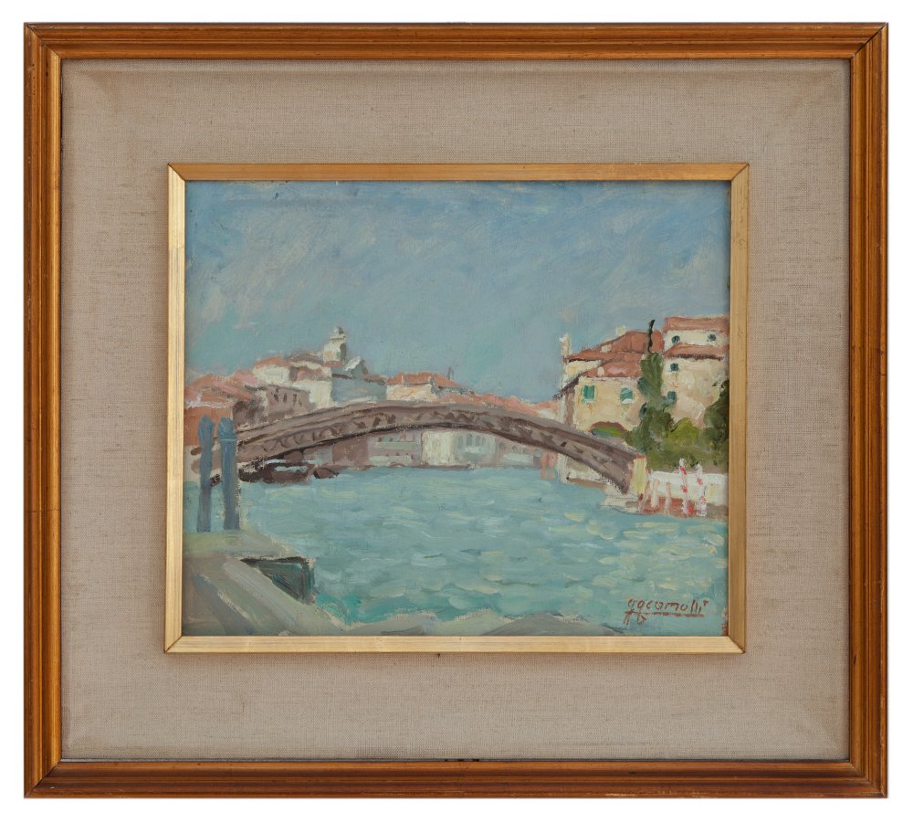 Gigi Comolli Milano 1893-1976 Ponte dell'accademia, Venezia Olio su compensato cm 25x30 firmato in basso a dx