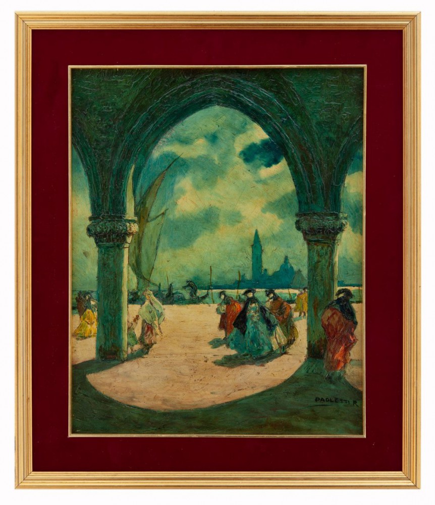 Rodolfo Paoletti Venezia 1866 - Milano 1930 Notturno a Venezia Olio su tavola cm 50x41 firmato in basso a dx