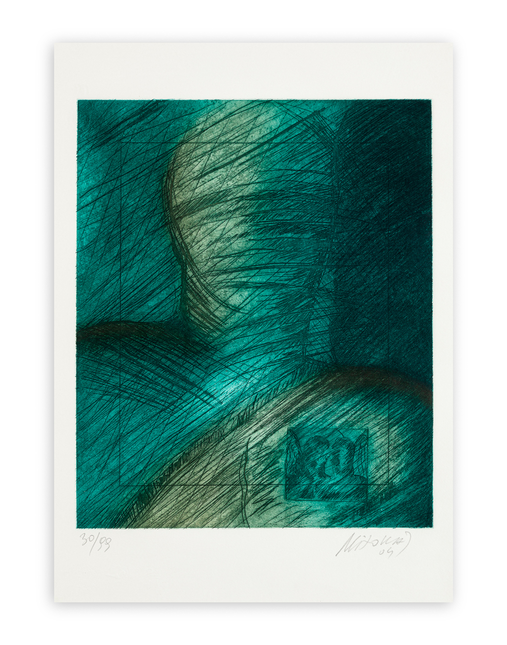 Firma, datazione e numerazione (Esemplare 30/99) a matita al fronte