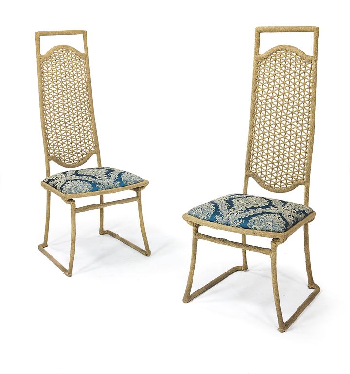 CECCHI MARZIO Coppia di sedie scultura in corda intrecciata e anima in...