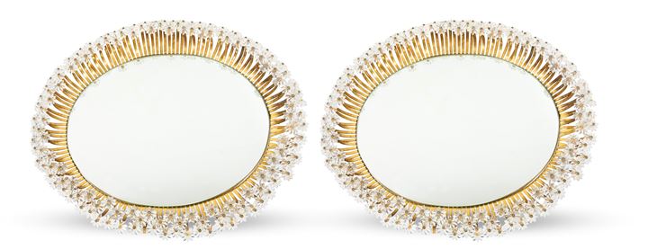 STEJHAR EMIL Coppia di specchiere in metallo laccato, elementi floreali in...