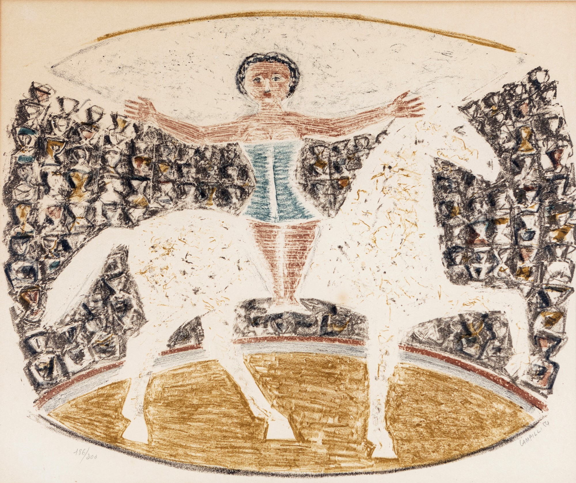 Senza titolo 1954 Litografia cm 45,5x56,5 - in cornice cm 55x64 Firma, data e numerazione "Campigli '54, 186/200". Timbro a secco in basso a sinistra