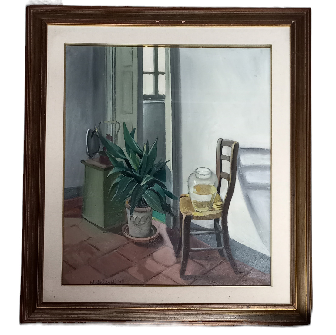 WALTER LUSARDI - COMPOSIZIONE - OLIO SU TELA CM.70X60 FIRMATO E DATATO IN BASSO A SINISTRA