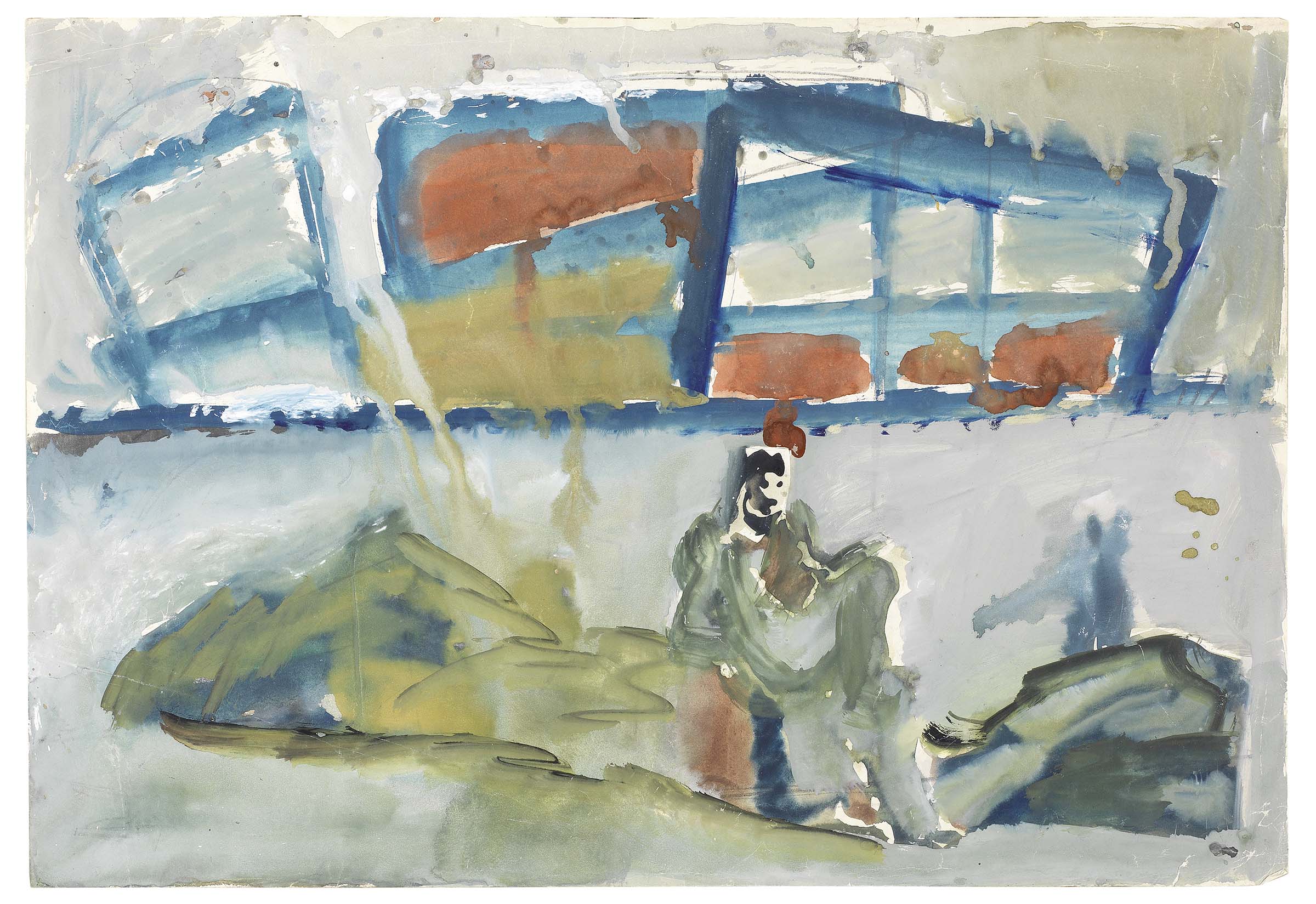 Mario Sironi Sassari 1885 - Milano 1961 Paesaggio con figura Tempera su carta, cm. 44x63,8