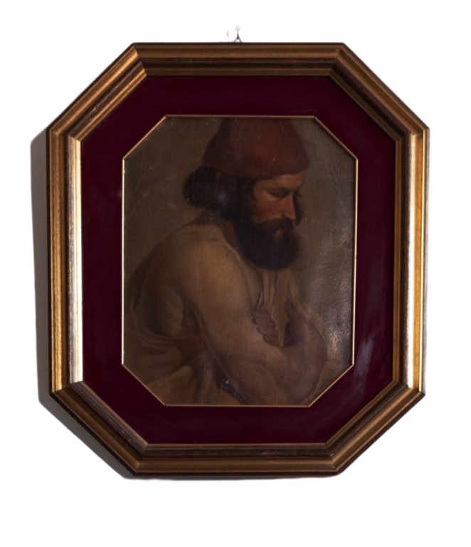 Scuola del XIX secolo, Figura virile con barba e fez rosso