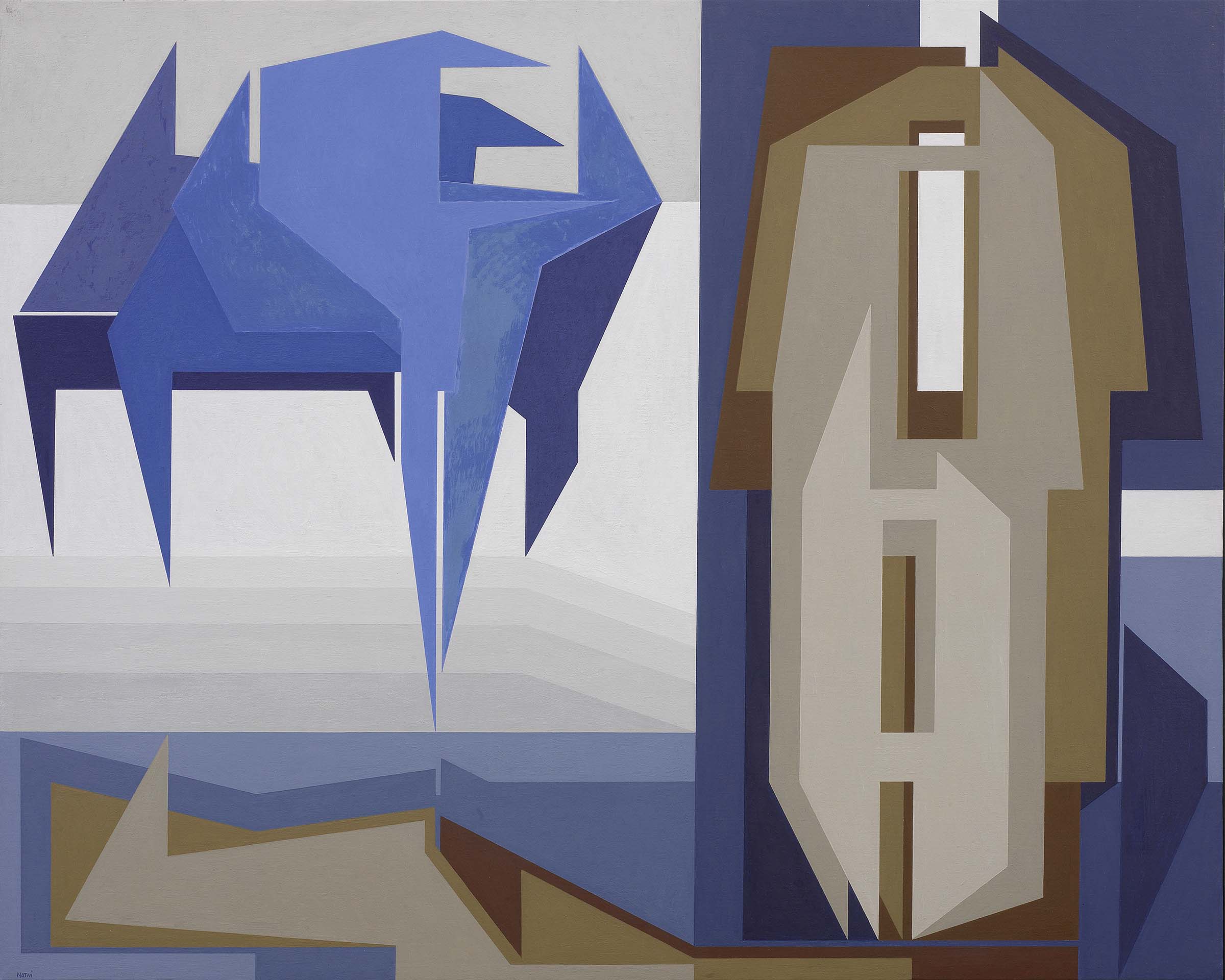 Gualtiero Nativi Pistoia 1921 - Greve in Chianti (Fi) 1999 Il pozzo dell'abisso, 1986 Tempera grassa su tela, cm. 80x100 Firma in basso a sinistra: Nativi; numero, titolo e dedica al verso sul telaio: 8604 / Il pozzo dell'abisso / A Bruno Giraldi; firma e data al verso sulla tela: G. Nativi / Firenze 1986: etichetta e timbro Santo Ficara / Arte Moderna e Contemporanea / Firenze.