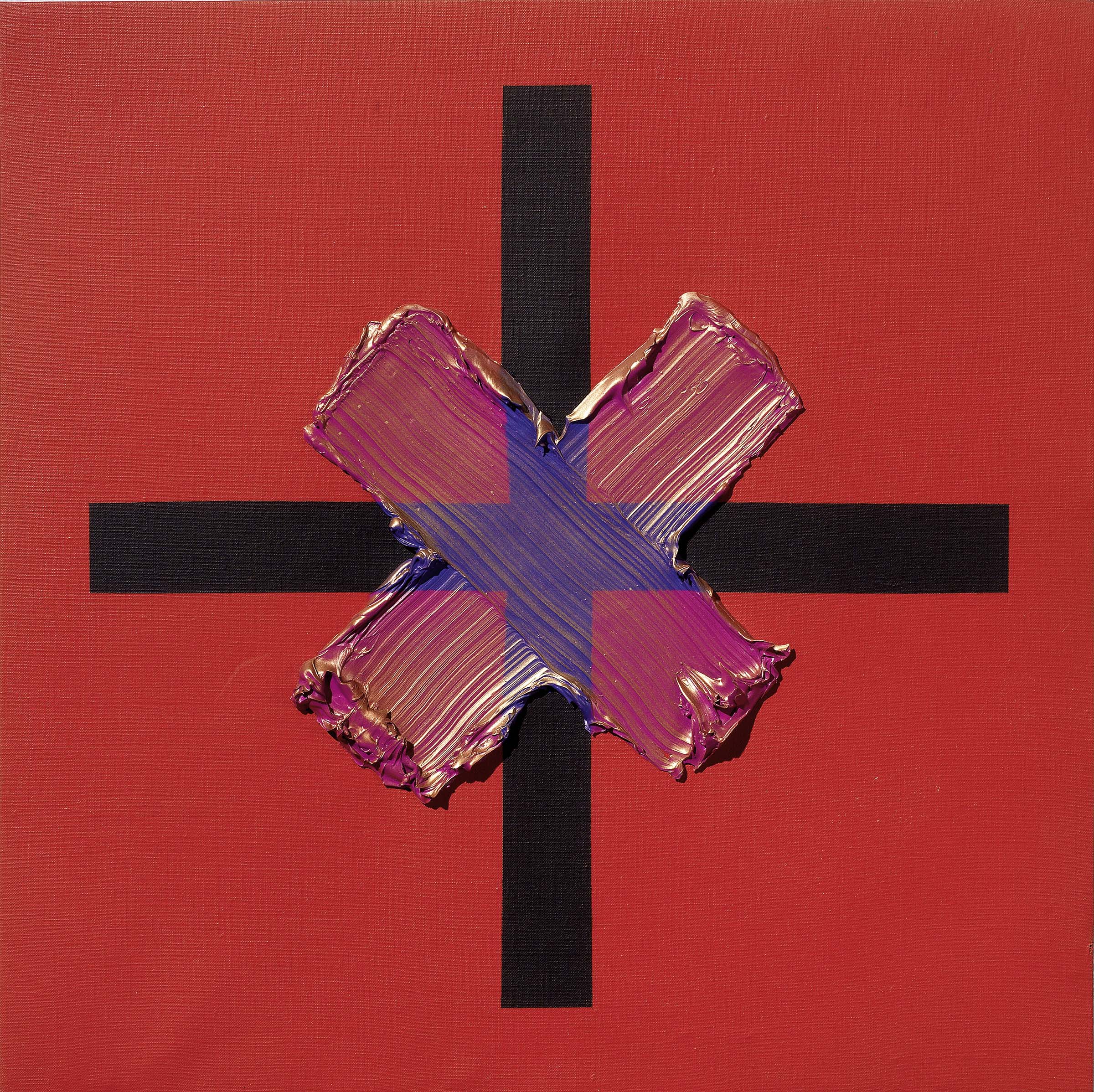 Jorrit Tornquist Graz 1938 Contracroce (Trasparenze), 1990 Acrilico su tela, cm. 50x50 Titolo, firma e data al verso sulla tela: Contracroce / Tornquist / 90 / (Trasparenze) / (1990) / Jorrit Tornquist; su un cartone di supporto: etichetta Studio f. 22 Modern Art Gallery / Palazzolo sull'Oglio. Foto autenticata dall'artista con etichetta Studio f. 22 Modern Art Gallery / Palazzolo sull'Oglio.