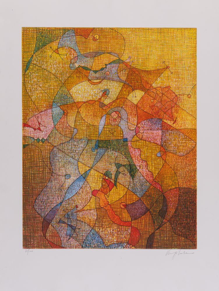 VINCENZO BALSAMO (Brindisi 1935 - Roma 2017)"Senza titolo". Acquaforte acquatinta su carta. Cm 73x56. Opera firmata in basso a destra Vicenzo Balsamo. Reca numeri di tiratura in basso a sinistra 32/100.