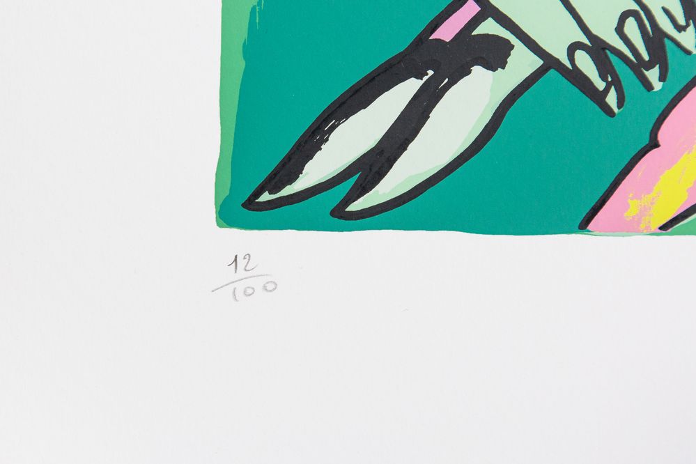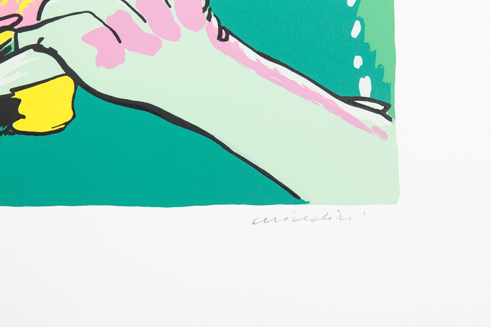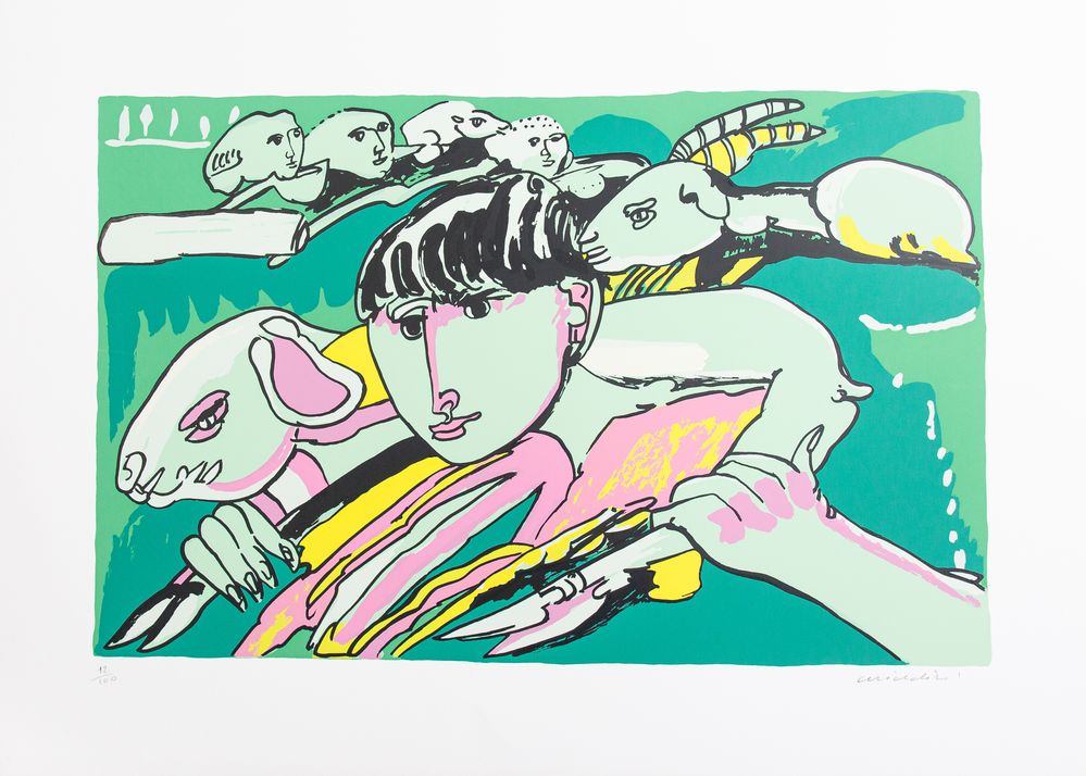 REMO BRINDISI (Roma 1918 - Lido di Spina 1996) "Senza titolo". Serigrafia a colori su carta. Cm 90x65. Opera firmata in basso a destra Brindisi. Reca numeri di tiratura in basso a sinistra 12/100.
