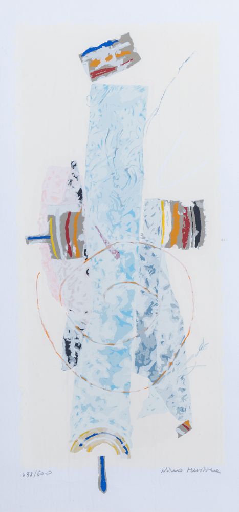 NINO MUSTICA (Adrano 1946 – Milano 2018) "Senza titolo". Litografia a colori su carta. Cm 67x32. Opera firmata in basso a destra Nino Mustica. Reca numeri di tiratura in basso a sinistra 498/500.