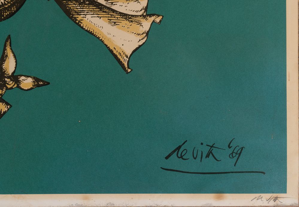 LUCIANO DE VITA (Ancona 1929 - Bologna 1992) "Senza titolo". Litografia a colori su carta. Cm 90x70. Opera firmata in basso a sinistra De Vita. Reca numeri di tiratura in basso a destra 97/100.