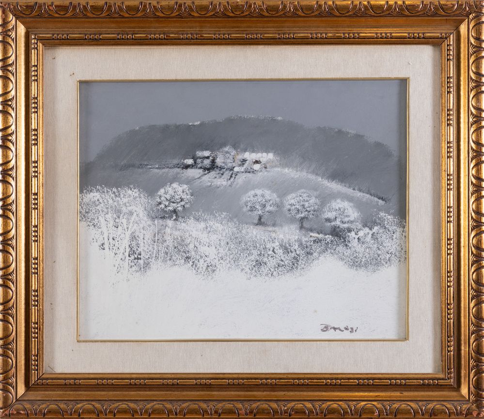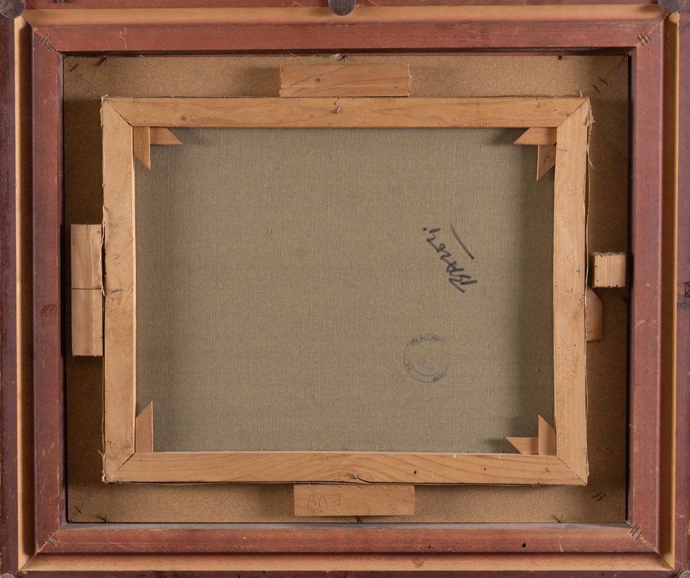 MANLIO BACOSI (Perugia 1921 – 1998) "Senza titolo". Olio su tela. Cm 40x50. Opera firmata in basso a destra Bacosi. Al retro opera firmata Bacosi. Al retro reca timbro non leggibile di Galleria d'arte.
