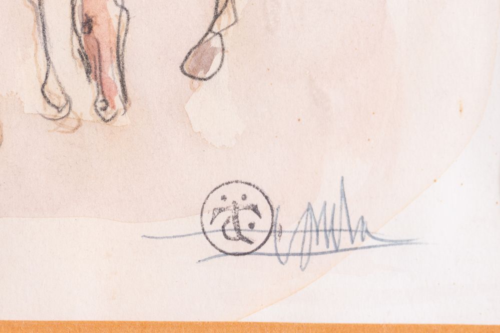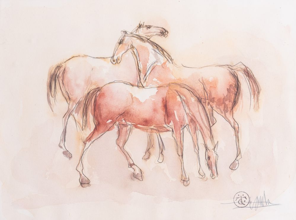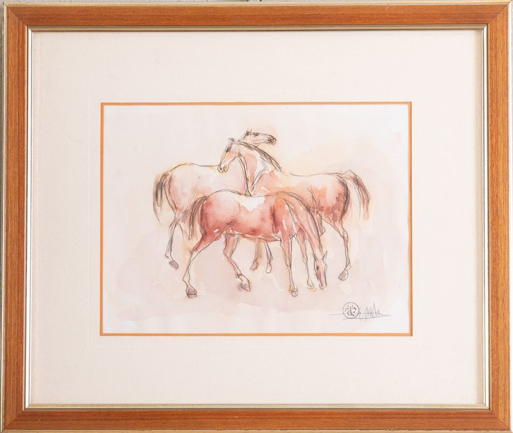 CLETO TOMBA (Castel San Pietro Terme 1898 – Bologna 1987) "Cavalli". Acquerello su carta. Cm18x24. Opera firmata in basso a destra C. Tomba. Reca timbro in basso a destra CT.