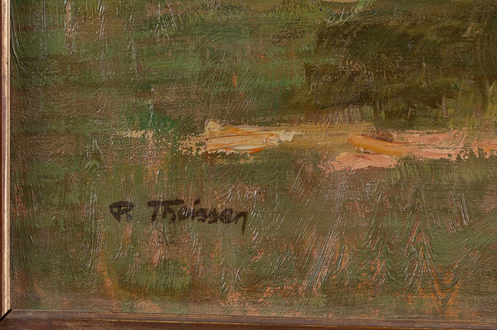 Paul THEISSEN (1915-1994) "Il pascolo". Olio su tela. Cm 68x98. Opera firmata in basso a sinistra P.Theissen.