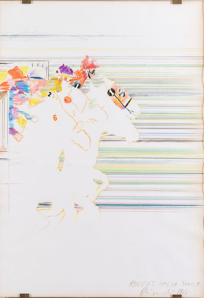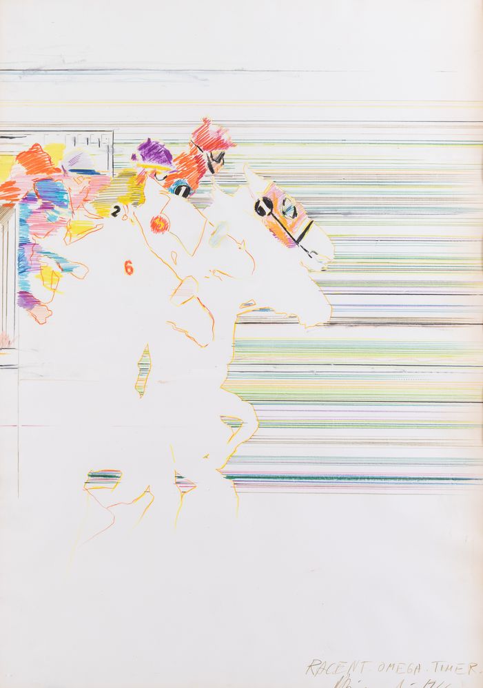 UMBERTO BIGNARDI (Bologna 1935 - Milano 2022) "Racent Omega Timer", 1966. Tecnica mista su carta. Cm 100x70. Opera firmata, intitolata e datata in basso a destra Racent Omega Timer, Bignardi, 1966.