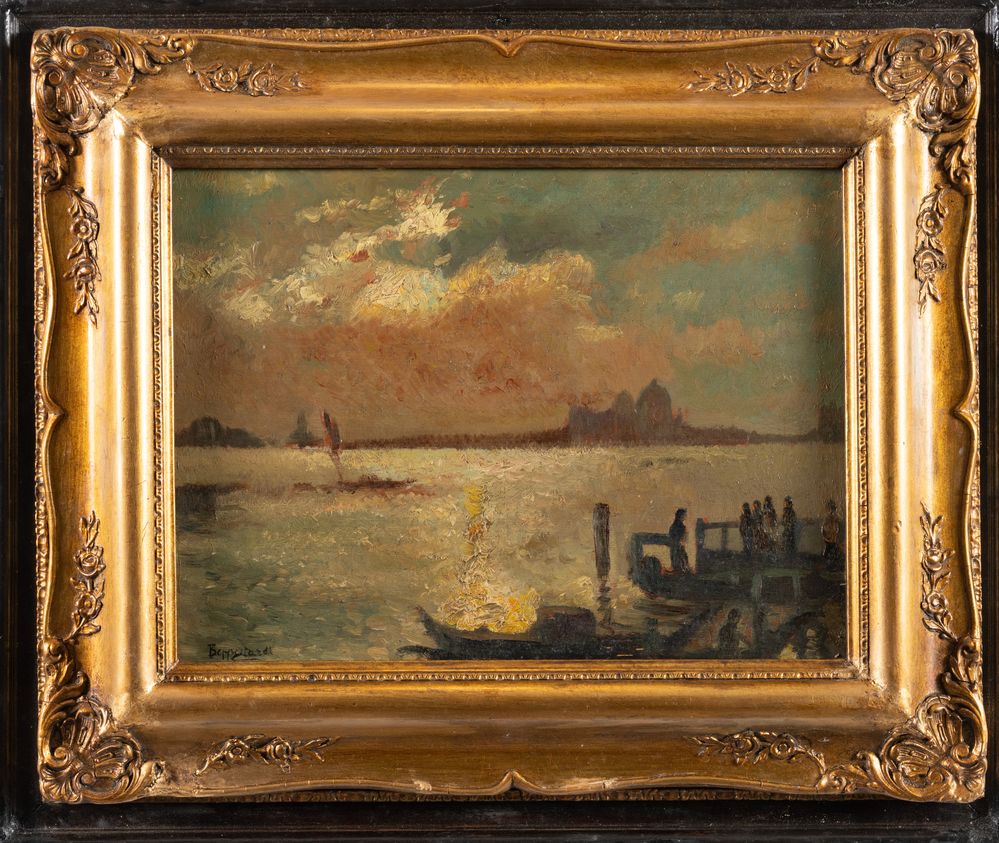 BEPPE CIARDI (Venezia 1875 - Quinto di Treviso 1932) "Laguna", 1920 circa. Olio su tavola. Cm 30x40. Opera firmata in basso a sinistra Beppe Ciardi. Opera accompagnata da autentica su fotografia con firma e timbro dello Studio d'Arte GR, Sacile.