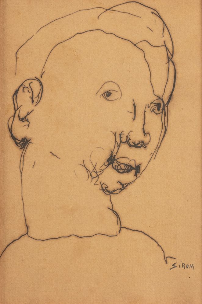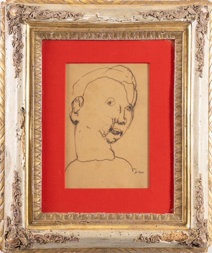 MARIO SIRONI (Sassari 1885 - Milano 1961)"Figura". Inchiostro nero su carta gialla riportata su tela. Cm 24,5x18. Opera firmata in basso a destra Sironi. Al retro reca autentica della nipote.