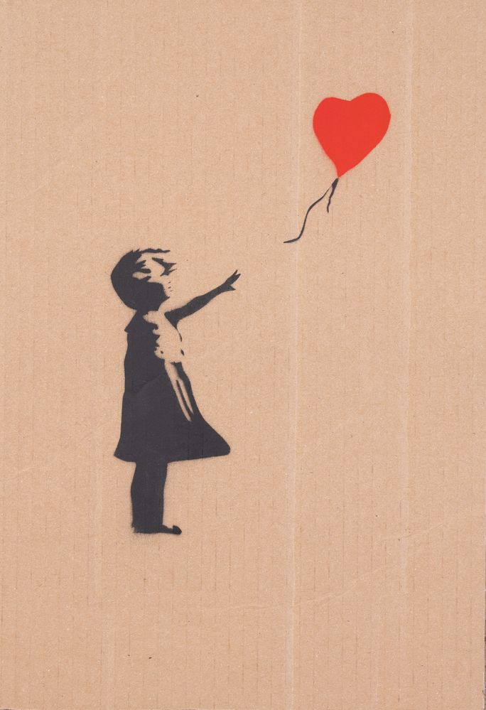 BANKSY (Bristol 1974) "Girl with balloon". Spray su cartone. Cm 37x25,5. Al...