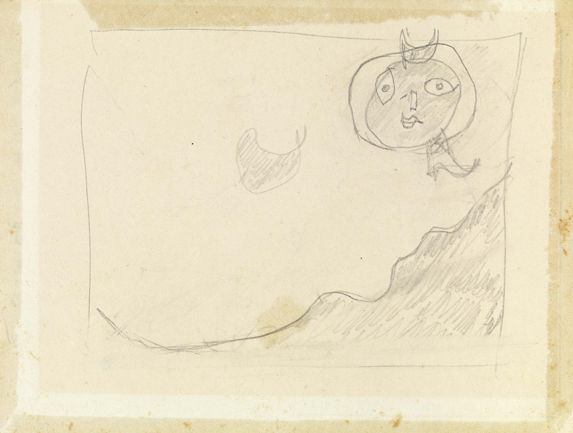 Osvaldo Licini Monte Vidon Corrado (Ap) 1894 - 1958 Amalassunta Matita su carta, cm. 15,5x20,8 Storia: Collezione Caterina Hellstrom Riccitelli, Ascoli Piceno; Collezione privata Certificato su foto di Caterina Hellstrom Riccitelli, Ascoli Piceno, 30/5/1986. L'opera è stata realizzata al verso di una tessera familiare per il prelevamento del sale.