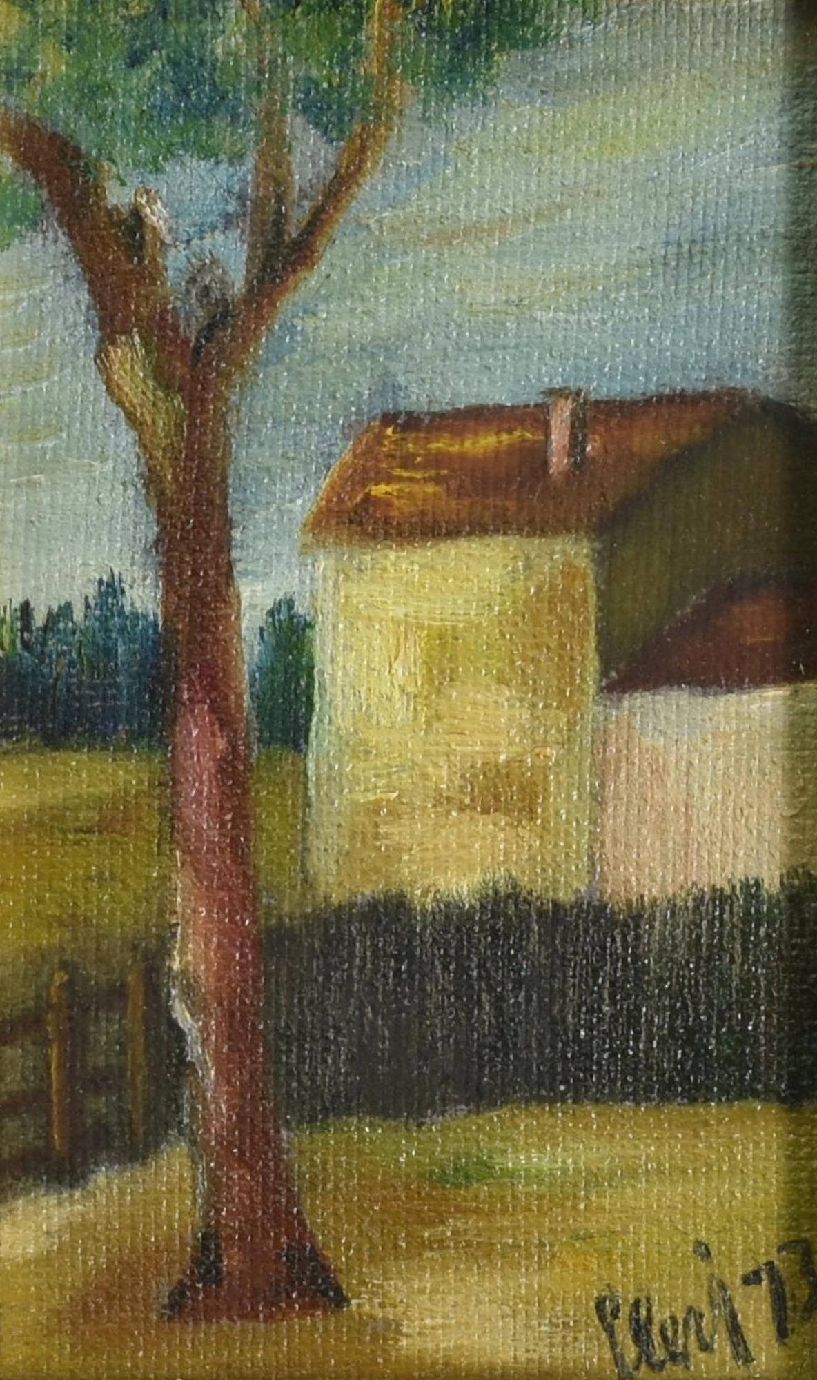 Giusto Levi CASA DI CAMPAGNA, 1973 olio su cartone telato, cm 18x11 firma e data