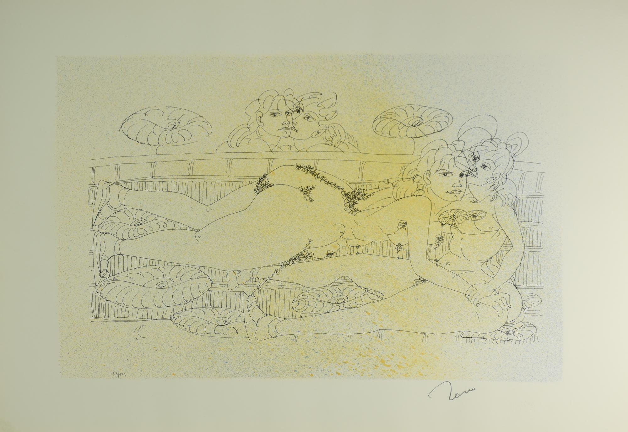 Tono Zancanaro SCENA SAFFFICA litografia su carta, cm 50x70, es. 23/125 firma...