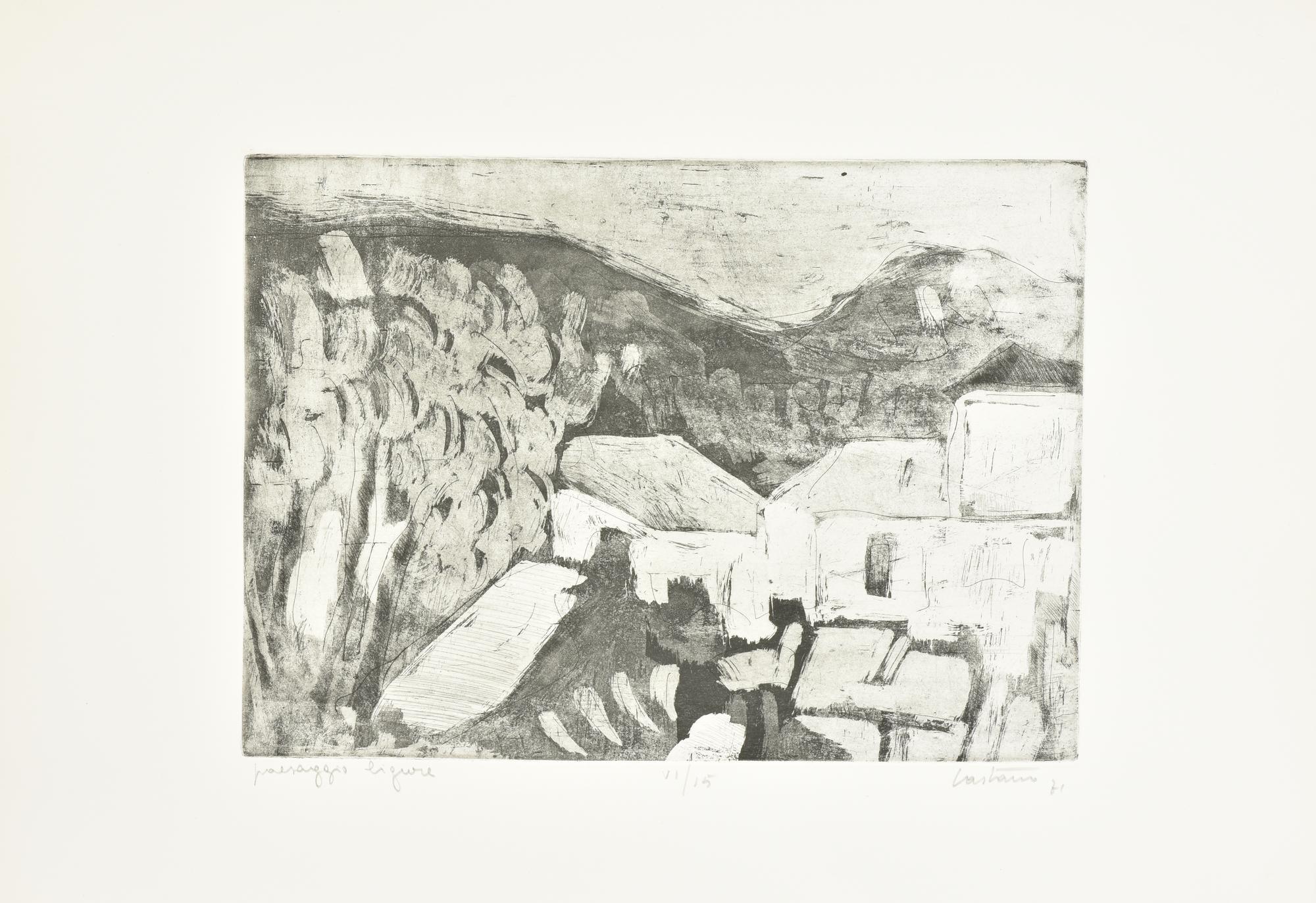 Aldo Castano PAESAGGIO LIGURE incisione su carta, battuta cm 22,5x31, su...